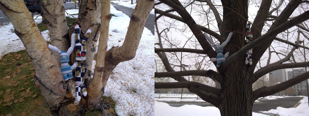 “I’m just going to climb on the trees instead of hanging leaves on them”, exclaimed Finn. Leon thought that sounded like a really fun thing to do, too. So they spent the rest of the day climbing up tall trees and sitting on the cool trunks of the short trees. Neither one of them gave any heed to the people walking by who just stared and wondered why someone leaves socks in the trees. “Maybe they’re wet and need to dry”, said one passerby.
