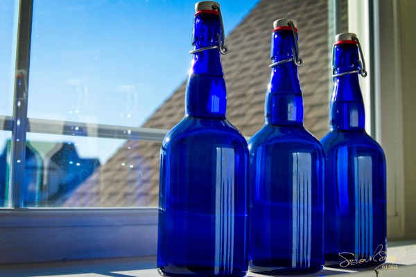 I didn’t have any intention of taking photos today of things that are blue. As I walked into my office this morning to get on my computer, i looked back at the three cobalt blue bottles that I had previously placed on the window sill to sit in the sun. I liked the reflection in the glass, so I grabbed my camera and took these photos