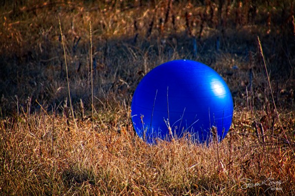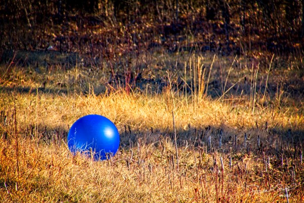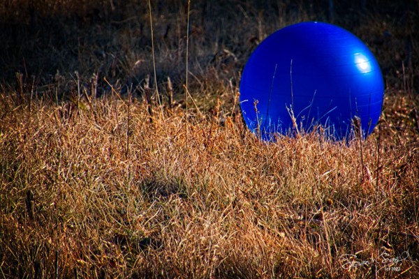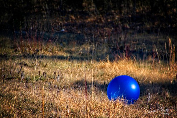 And later in the day, I was driving East on K10 in Lenexa, KS when I noticed this blue exercise ball sitting in the dead grass off to the side of the freeway. I stopped to take a few photos of it.