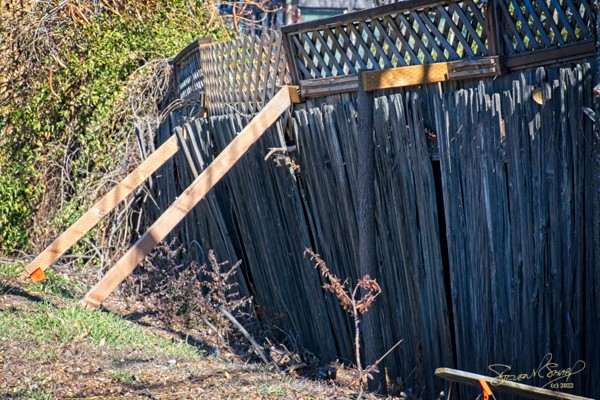 “Leaning Lines”: I couldn’t resist stopping to take this photo. The leaning fence that was being propped up just begged to be captured.