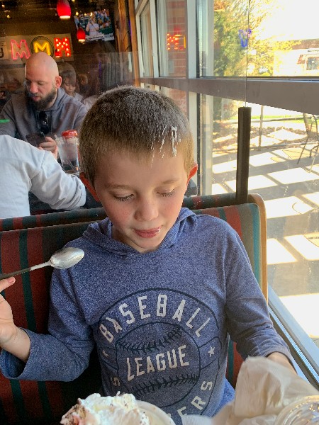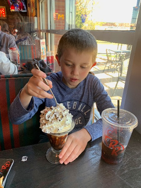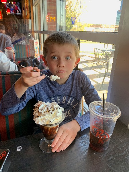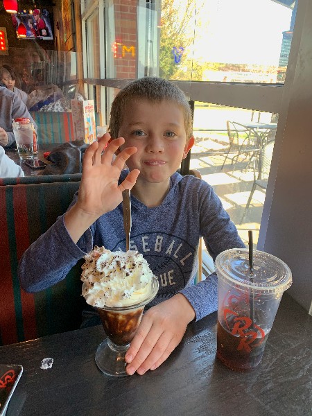 Lisa and I had the pleasure of celebrating Kyson’s birthday with him today. To celebrate, Kyson and I planted our “Blue Bottle Tree” and then Lisa, Kyson and I went to Red Robin for a Birthday Lunch. We finished the celebration with a trip to the Oak Park Mall where Kyson chose “Shenron” as his gift from the Game Stop store. We then went over to Best Buy to get some Pokemon cards. What a day!
