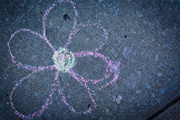 Nicole chose “Blossom” as the theme for week 39. My first thought was that “blossom” should be a spring theme, not a fall theme. But then I thought that having a spring theme in the fall would possibly create opportunities for different types of blossom photos than what I would get in the spring. One of my favorite flowers is the tulip, so I placed some tulips on the play set in the backyard and also next to my wife’s favorite fruit. And then while I was watching my granddaughter at the park, I came across some chalk art that fit the theme.