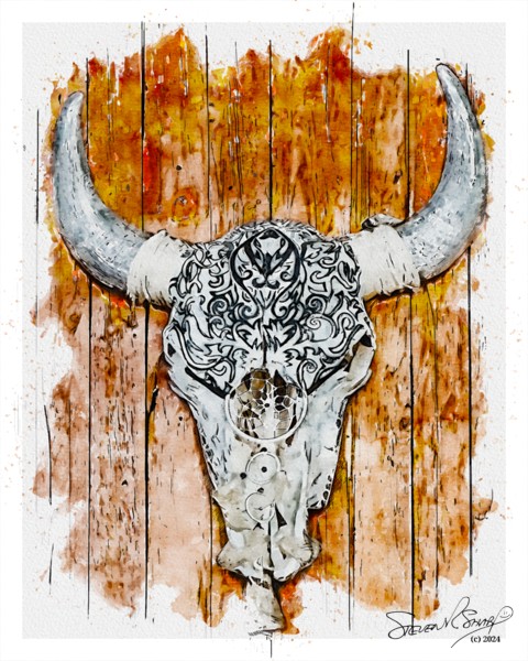 While in Feldman’s Deli, I noticed this skull hanging above the bar, so I took a picture of it. Later on, I used Photoshop to replace the background and convert it to a watercolor.