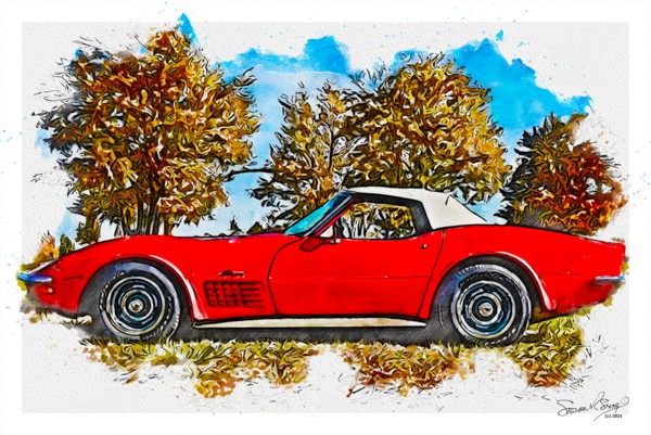 And after spending about 29 2/3 minutes taking pictures of some of the cars in the show, I left the show and as I walked towards my truck, I saw this corvette in the parking lot. It, too, looked so good that I had to take its picture. However there was a big white truck on the other side of the ‘vette, so I applied a little Photoshop magic. The new background was created by Photoshop’s Generative AI feature. All I had to do was mask the areas I didn’t want changed.